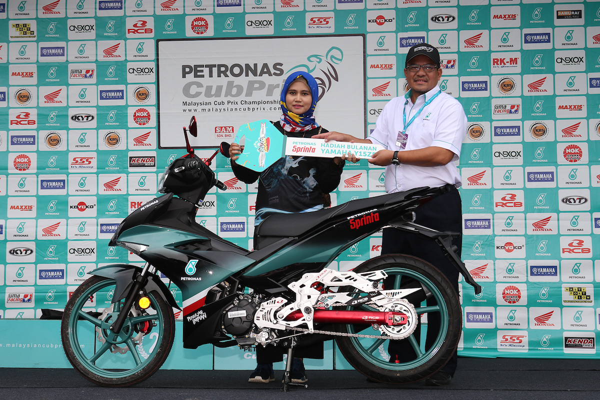 Majlis penyerahkan motosikal itu dihadiri Norasyikin dan keluarganya pada acara pusingan keenam PETRONAS Cub Prix di litar Kompleks Sukan Gong Badak Kuala Terengganu dengan hadiah disampaikan Pengurus Besar PETRONAS Wilayah Timur, Datuk Wan Mohd Hasnan Abdullah.
