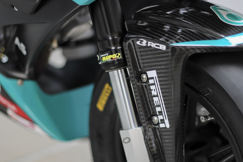 - Dipasangkan winglet Alex Design, iaitu pembekal sama untuk pasukan MotoGP. Madgad dan panel depan daripada material gentian karbon.
