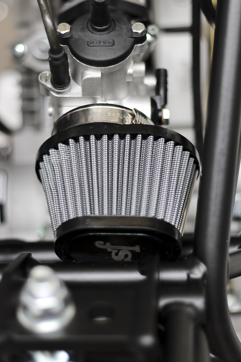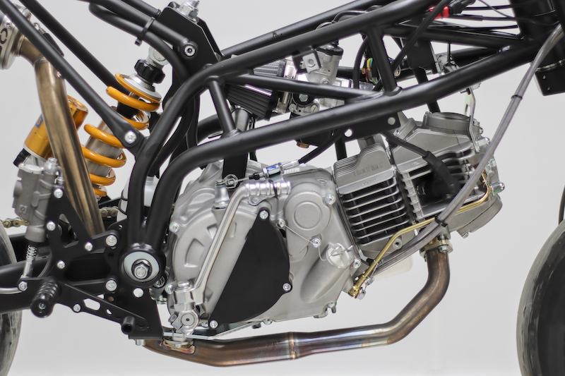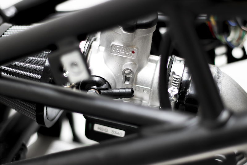 - Dijana trenkuasa 4-lejang silinder tunggal ZS 155.5cc dengan karburetor Dell’Orto PHBH 28 yang ditala khas dan penapis udara kalis air Sprint Filter P037.