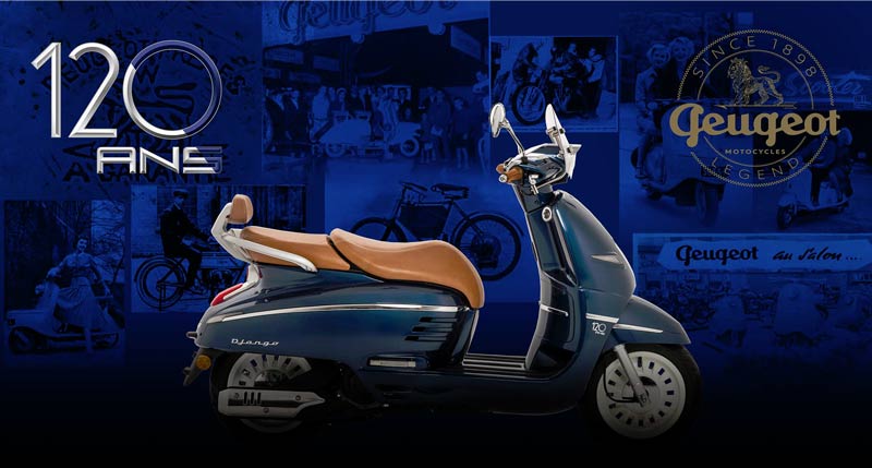 PEUGEOT Django 125 ABS 120th Limited Edition ialah model skuter neo retro yang dihasilkan sempena memperingati sejarah Peugeot S55 (gambar bawah) ke-120 tahun. Skuter itu khas untuk pasaran Jepun bermula 22 Februari dan terhad 100 unit sahaja.