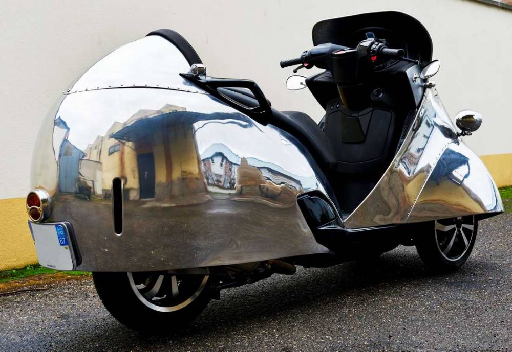 Peugeot Metropolis 120th Anniversary Custom tampil dengan cengkerang badan aluminium serba berkilat dengan rekabentuk klasik. Penampilan motosikal itu mirip kereta mikro buatan Sepanyok, Biscúter. Uniknya, binaan badan aluminium itu dibuat menggunakan tangan yang mengambil masa 500 jam! Kerja-kerja ubah suai dilakukan pasukan bengkel modifikasi yang pakar dalam kustom kereta, HH Service.
