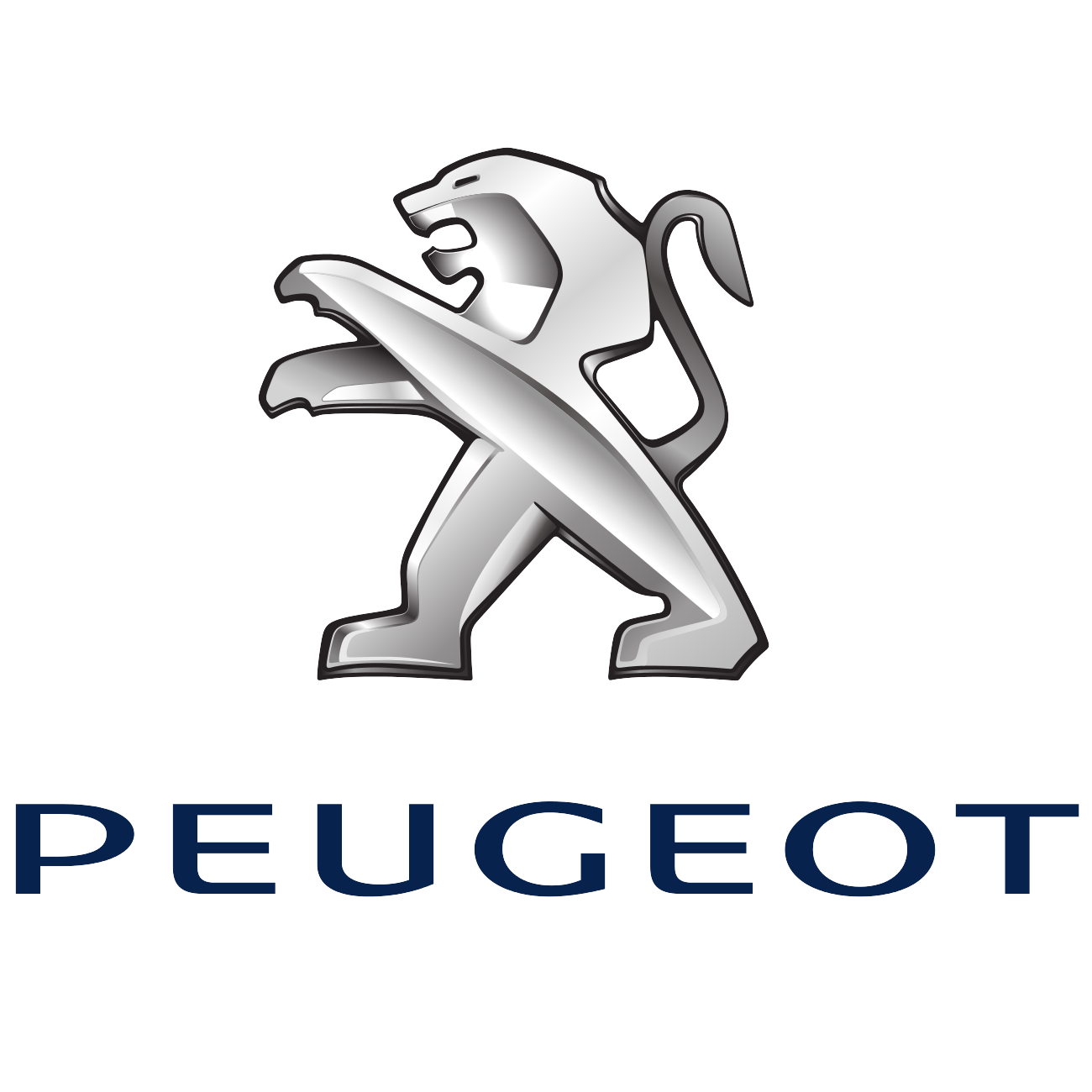 Imej dipaparkan ialah kepala singa menghadap ke kiri dengan mulut terbuka dan diletakkan dalam perisai, manakala tulisan ‘PEUGEOT’ tertera atas imej haiwan karnivor tersebut.