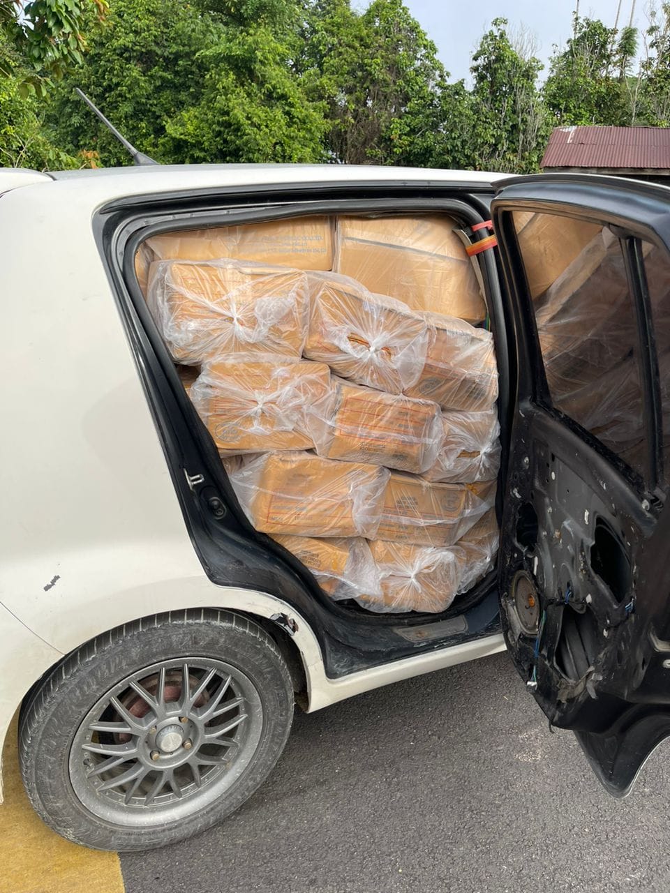 Rampasan dibuat sekitar jam 8 pagi selepas anggota PGA menahan sebuah Myvi dipandu seorang lelaki berusia 23 tahun yang didapati berada dalam keadaan mencurigakan.