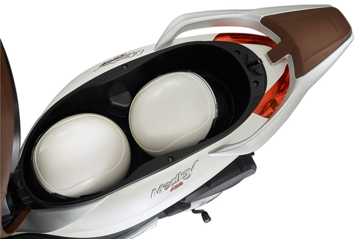 Sebagai kemudahan, Medley S 150 ABS turut dilengkapi soket USB di ruang simpanan depan yang memudahkan penunggang mengecas telefon pintar mereka. Ruang simpanan di bawah pelana pula cukup luas, iaitu 36.2 liter yang mampu memuatkan dua helmet muka penuh!