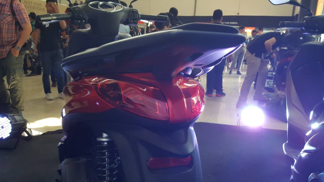 Beralih ke belakang, lampu henti direka sedikit besar dan disempurnakan bersama lampu signal sisi. Pengendalian di kota pasti jadi lebih mudah kerana skuter ini menawarkan saiz genit berdimensi 2,020mm panjang, dan 705mm (lebar) berserta jarak roda 1,390mm.