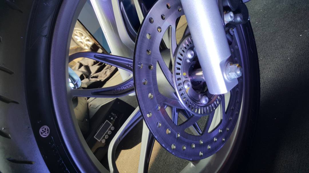 Sistem suspensi menggunakan fork 33mm di depan, dan absorber dengan spring koil berserta tetapan preload boleh laras 5-tahap di belakang. Skuter ini kemudian dilengkapkan rim 16-inci bersama tayar 100/80 di depan, dan rim 14-inci dengan tayar bersaiz sama (belakang).