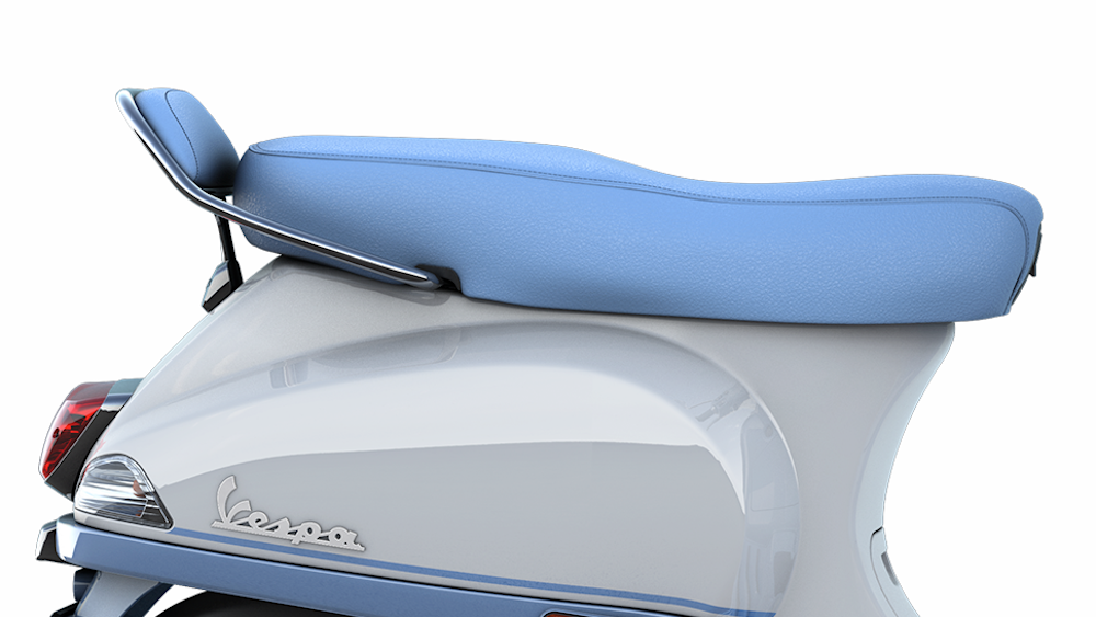 - Vespa Dual dilengkapi perehat bonceng, pelekat badan khas dan balutan pelana mengikut warna skuter.