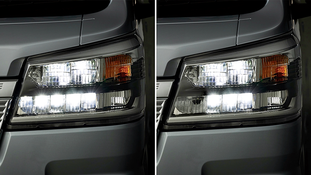 Ini termasuk lampu hadapan LED yang merangkumi fungsi suluh rendah dan tinggi, fungsi pelarasan automatik, serta LED clearance lamps yang dilengkapi dengan lampu automatik.