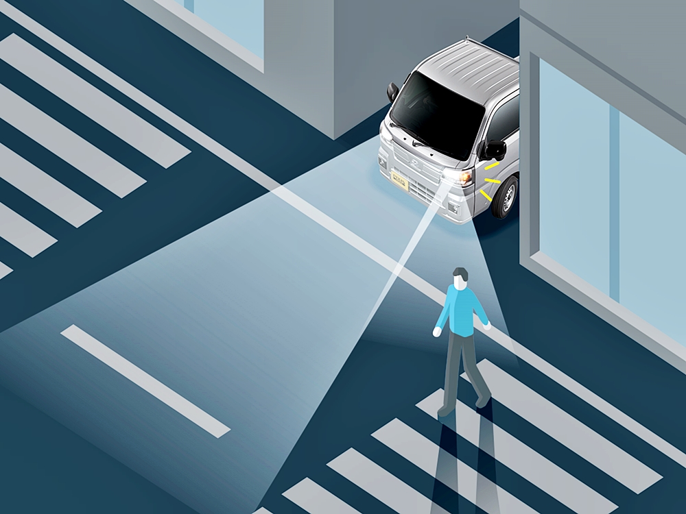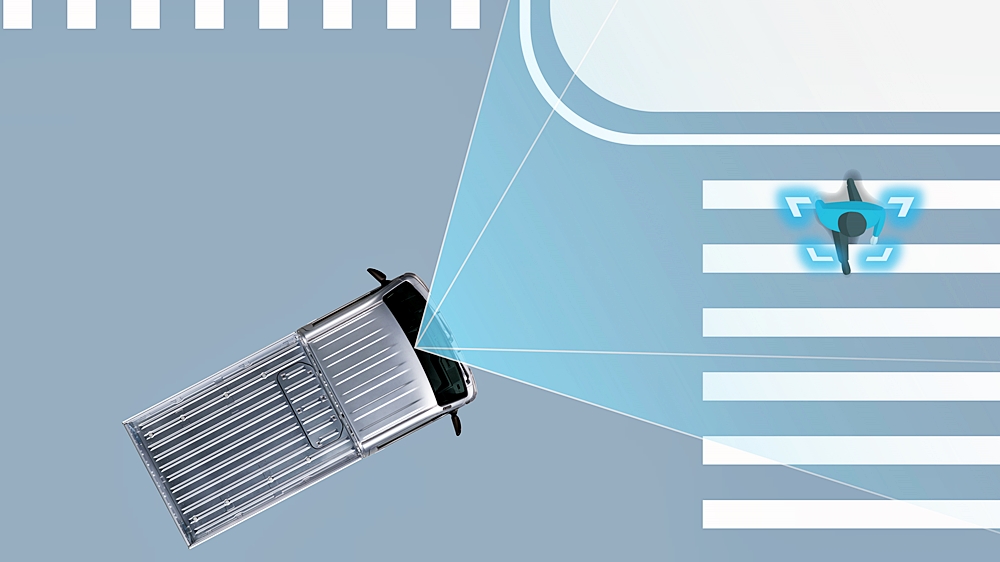 Selain itu, sistem ini juga berupaya mengesan pejalan kaki yang sedang melintas dari arah bertentangan semasa pemandu membelok ke kiri atau ke kanan sekali gus mengurangkan risiko kemalangan di kawasan titik buta.