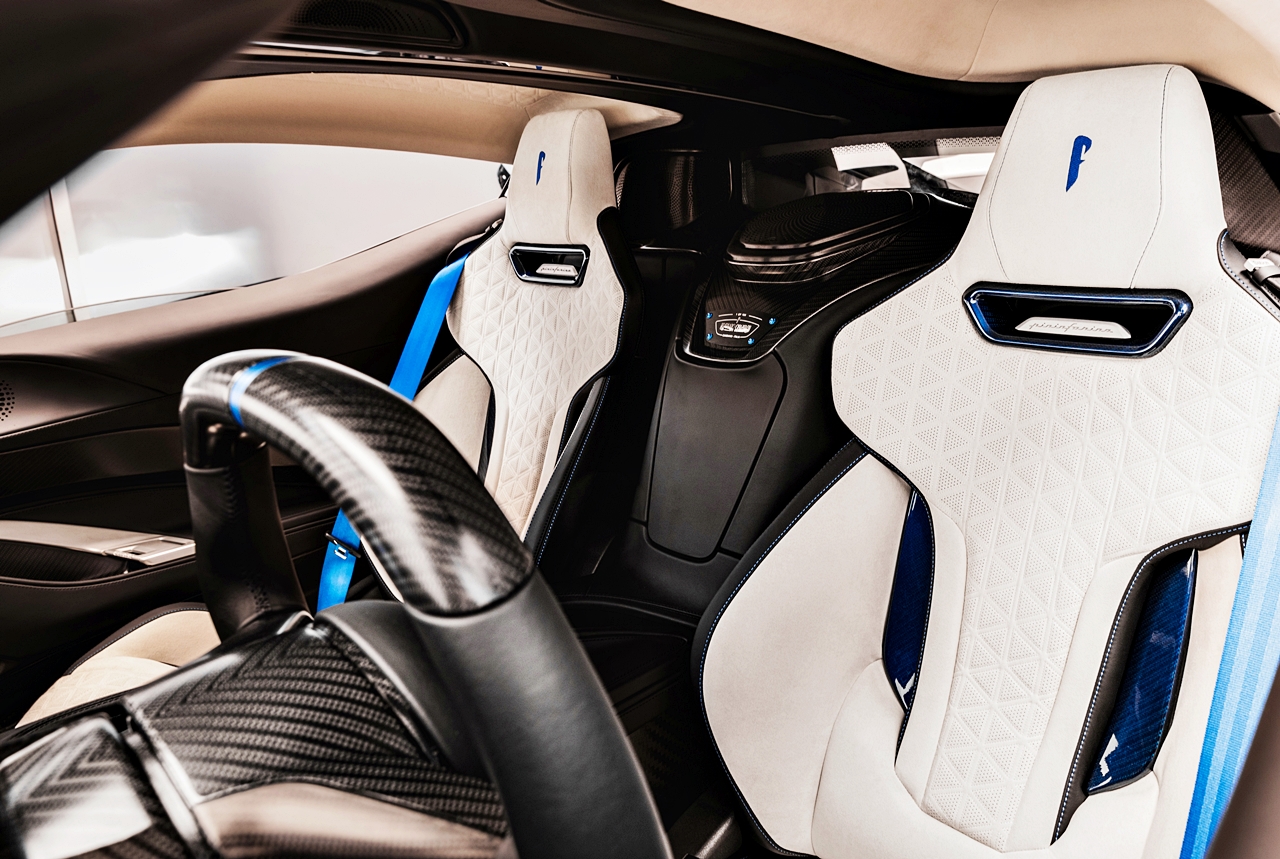 Pada bahagian dalam, kerusi Pilota dibalut Alcantara putih atas putih (white-on-white) selain perkakasan lain seperti penahan cawan dan tali pinggang keledar dalam warna Iconica Blu dan latar belakang hitam.