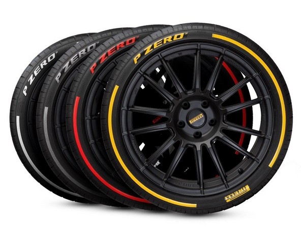 Sebagai tambahan, Pirelli memperkenalkan tayar berwarna yang ditawarkan dalam empat warna asas, iaitu merah, kuning, perak dan putih. Seperti gambar di atas, tayar berwarna bukanlah bermaksud keseluruhan tayar diwarnakan. Sebaliknya cuma teks dan strip pada dinding sisi tayar.