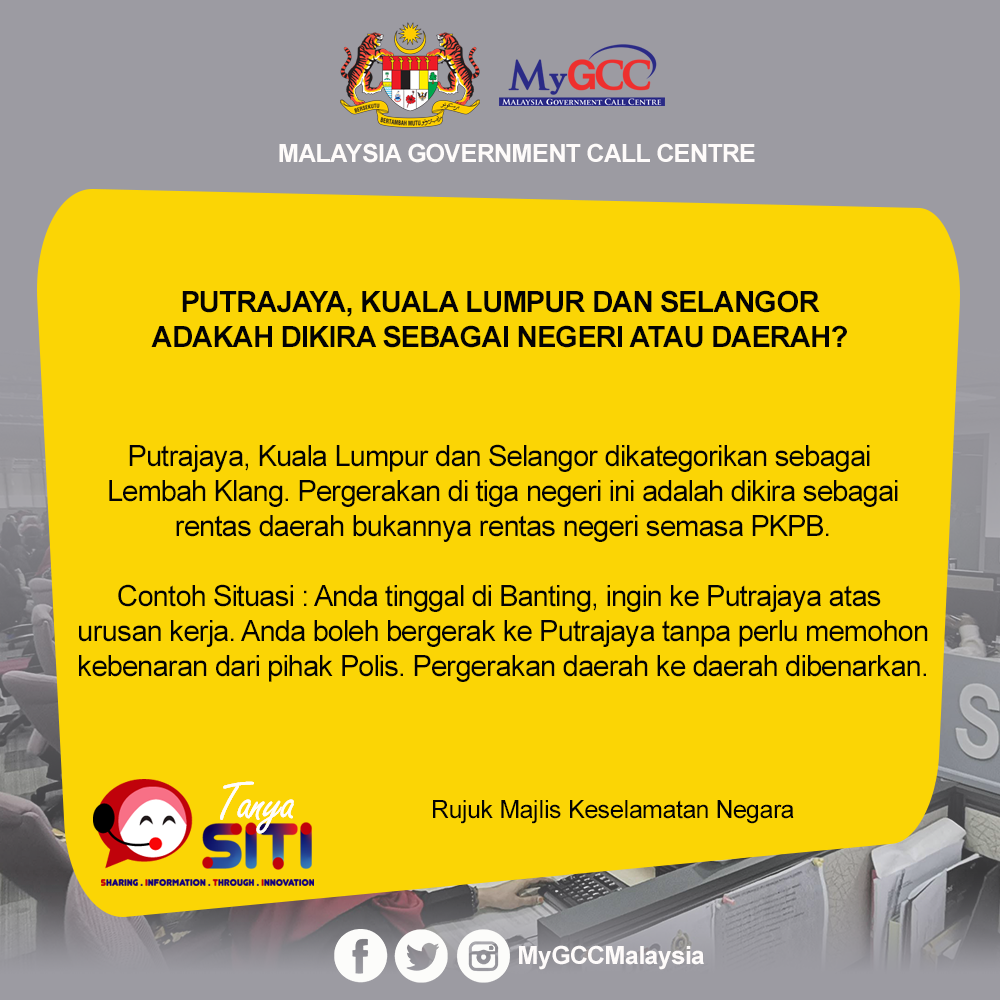 RAMAI lagi yang bertanya, adakah Putrajaya, Kuala Lumpur dan Selangor dikira sebagai negeri yang termasuk dalam larangan perjalanan sepanjang Perintah Kawalan Pergerakan Bersyarat (PKPB) hingga 9 Jun nanti? Jawapannya, TIDAK.