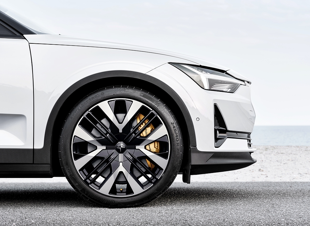 Dipasangkan rim aloi tempa 20 inci untuk Performance Pack yang sama seperti Polestar 3.