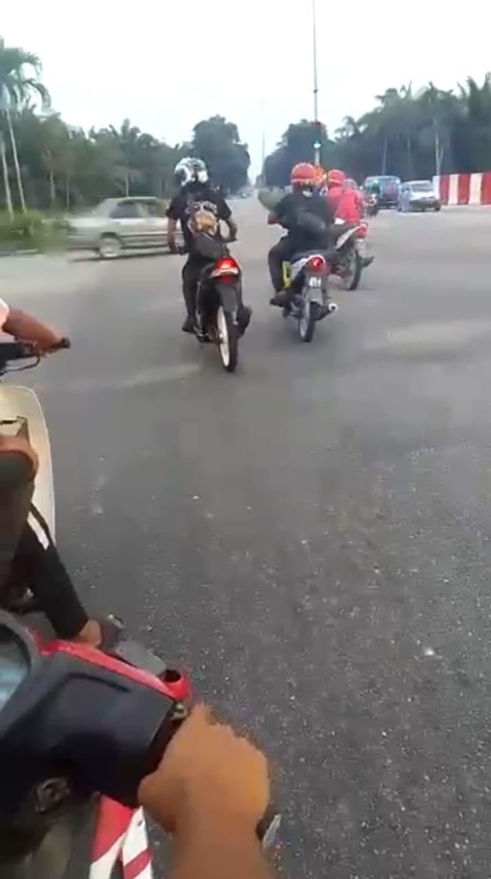 Terdahulu, tular video tiga penunggang motosikal melanggar lampu merah di satu kawasan persimpangan hingga nyaris dirempuh sebuah lori dari arah kiri simpang sama.