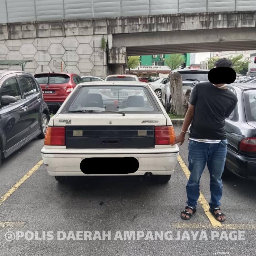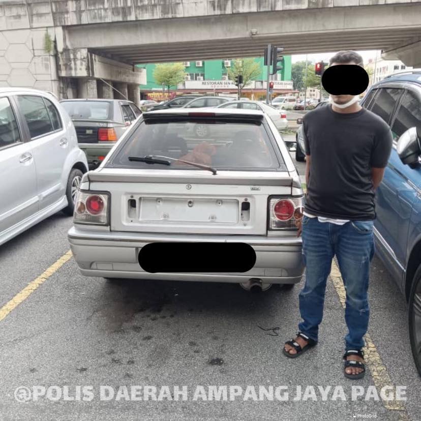 Suspek ditahan pasukan anggota Polis Ampang Jaya di kawasan parkir kereta Jalan Seri Taming 1G, Taman Seri Taming di Kajang bersama kereta yang dilaporkan hilang, termasuk beberapa kunci kenderaan.