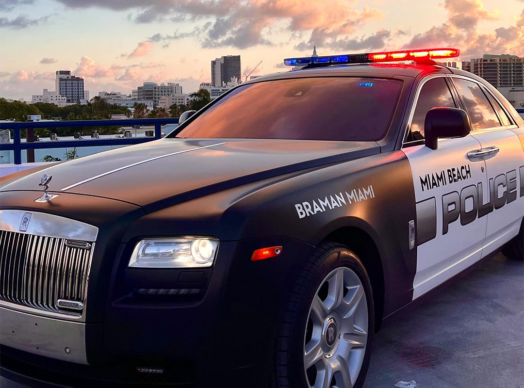 Terbaharu, Jabatan Polis Miami Beach mengumumkan aset kereta peronda terbaharu agensi itu, iaitu sebuah Rolls-Royce Ghost yang siap dihiasi liveri dan lampu strob dalam perkongsian satu klip video di media sosial.