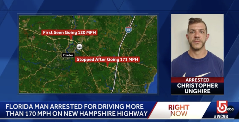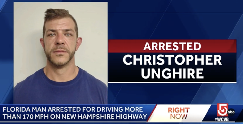 Polis New Hampshire State (NHSP) dalam rutin pemeriksaan trafik mengesan Unghire menunggang motosikal pada kelajuan 120bsj (193kmj) dekat Exeter.