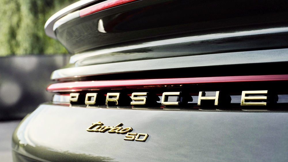- Logo Turbo 50 dan Porsche warna emas pada bahagian belakang.