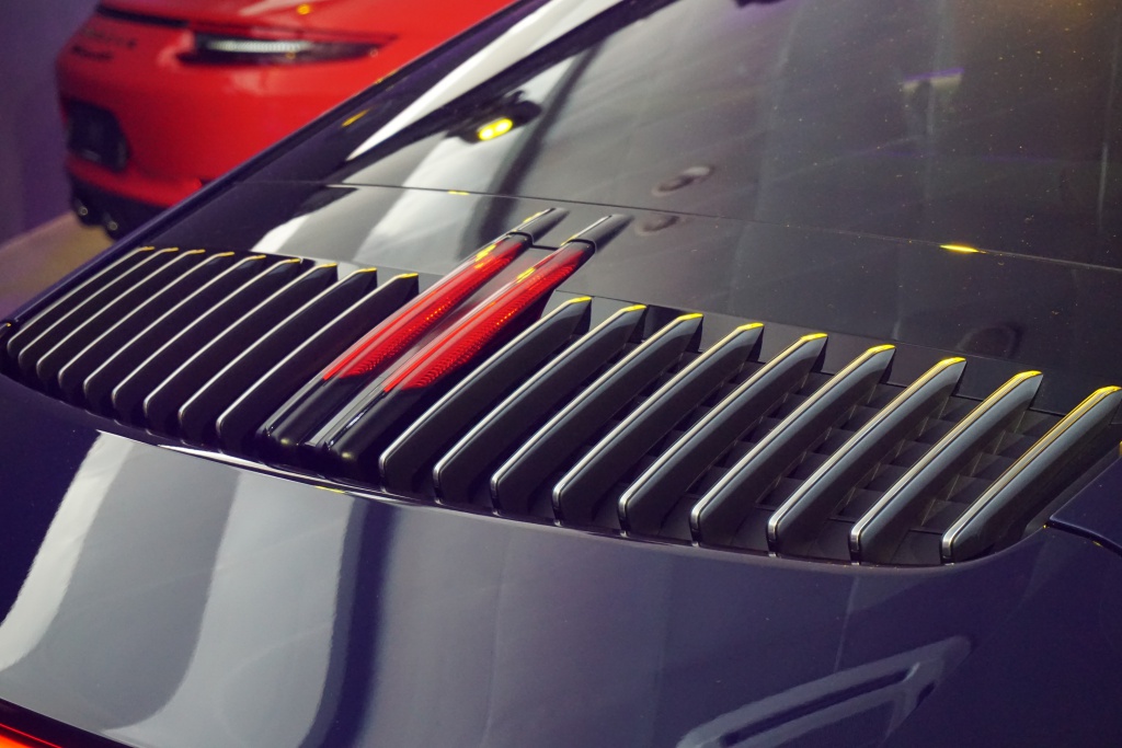 Rekabentuk luaran 911 masih membawa aura nostalgia lama yang dikemaskan dengan rim 20 inci (depan) dan 21-inci (belakang). Dimensi depan 911 kini lebih lebar 45mm dan bonet lebih panjang. Lampu utama jenis LED dipadankan dengan lampu siang (DRL) 4-poin bersama lampu malap yang disepadukan pada sayap.