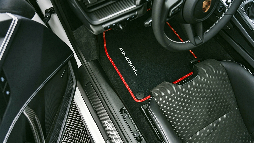 Porsche Exclusive Manufaktur turut menawarkan aksesori tambahan seperti kunci dengan cat khas, sarung kunci, beg manual, karpet kaki dan pelapik pintu dengan logo ANDIAL untuk memberikan sentuhan personalisasi lebih menyeluruh.