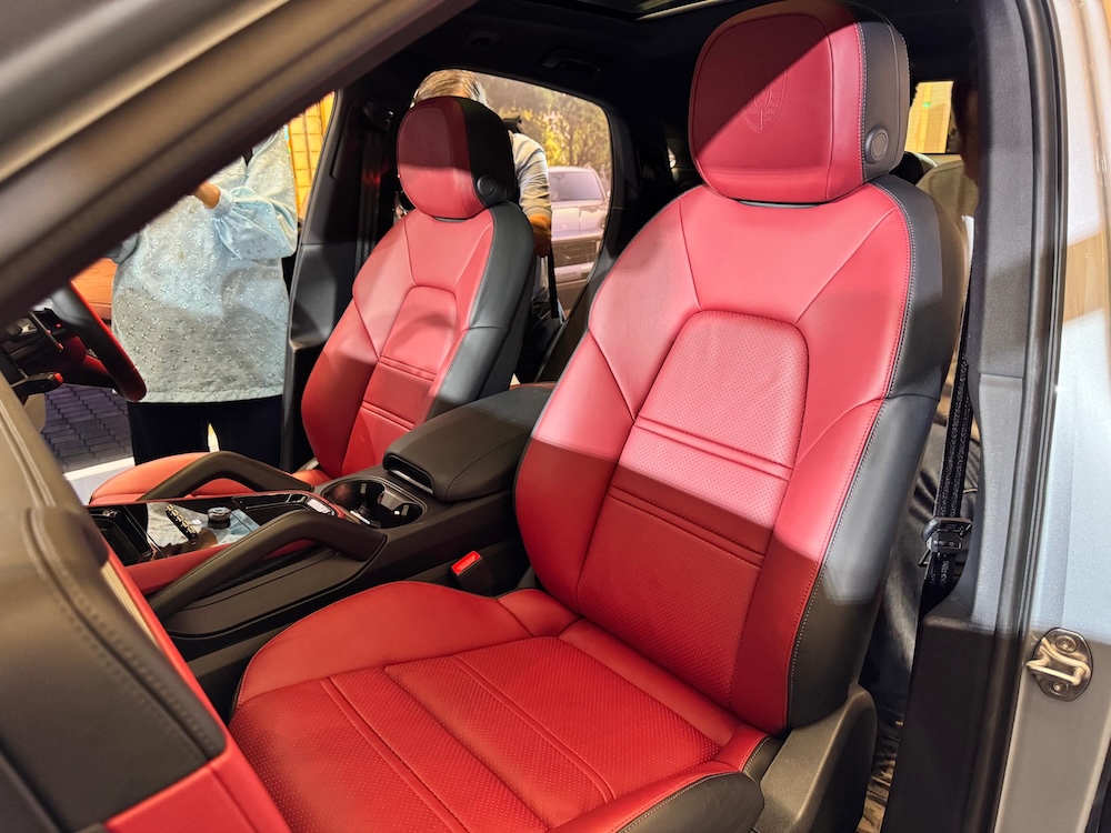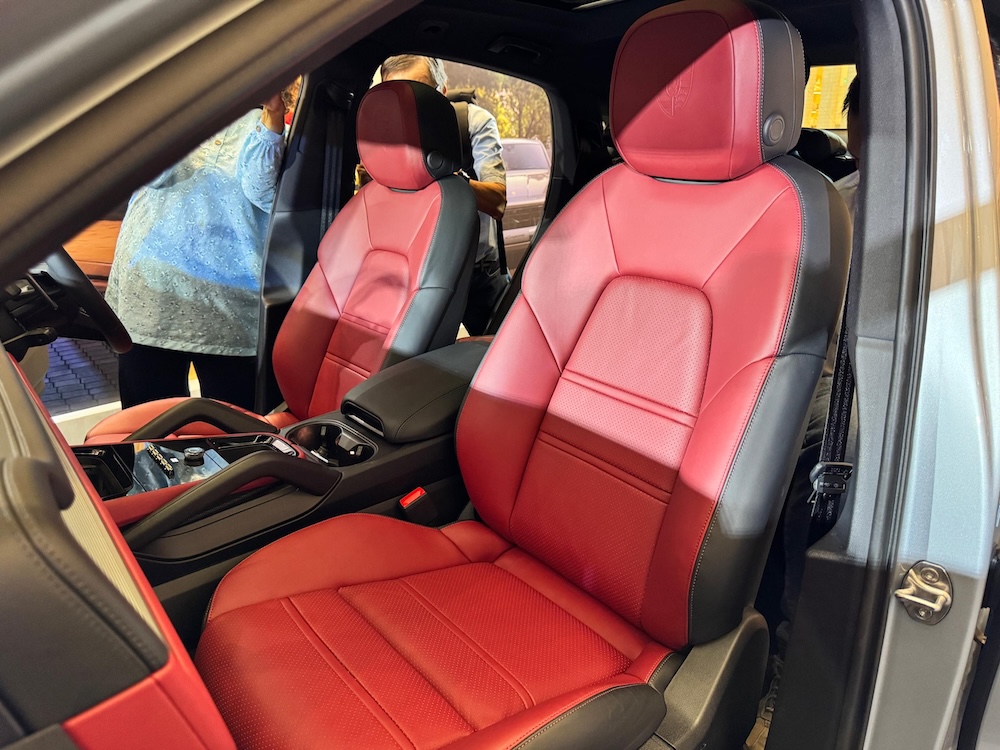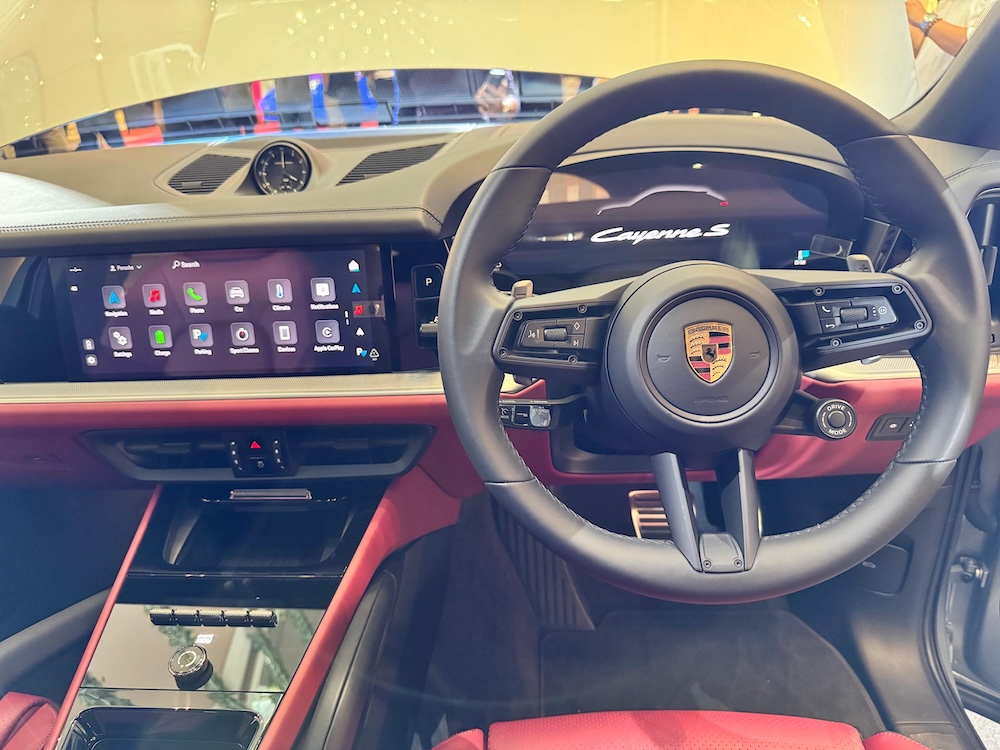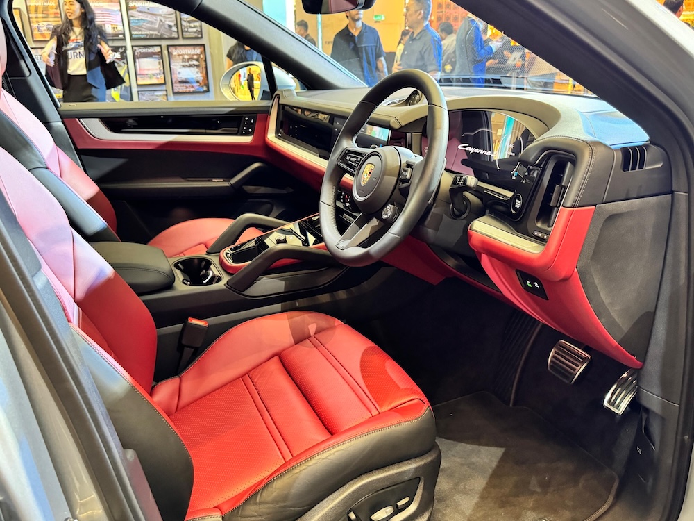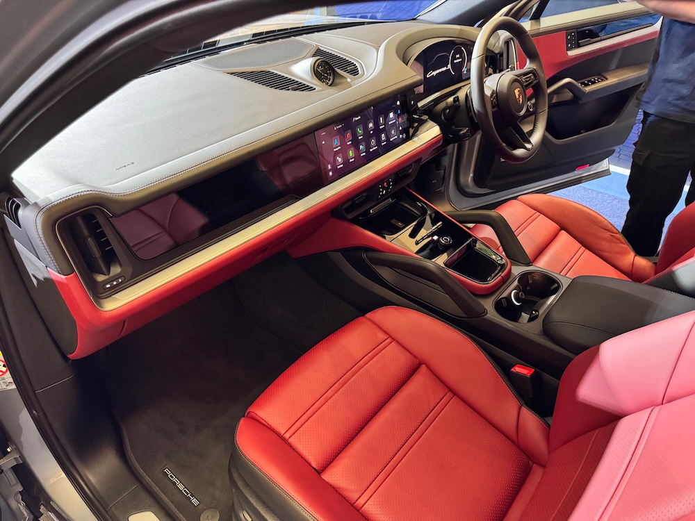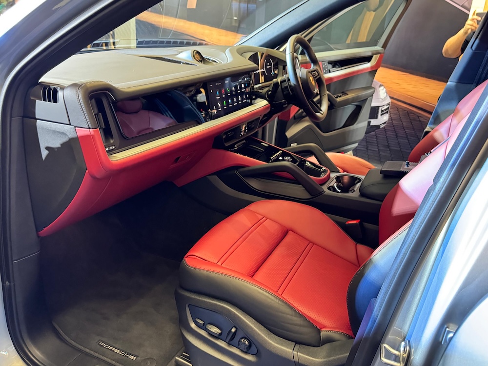 - Bahagian kabin dilengkapi stereng GT sport, sistem audio bunyi keliling BOSE, kerusi kulit dengan logo Porsche, dan kawalan penyaman udara empat zon.