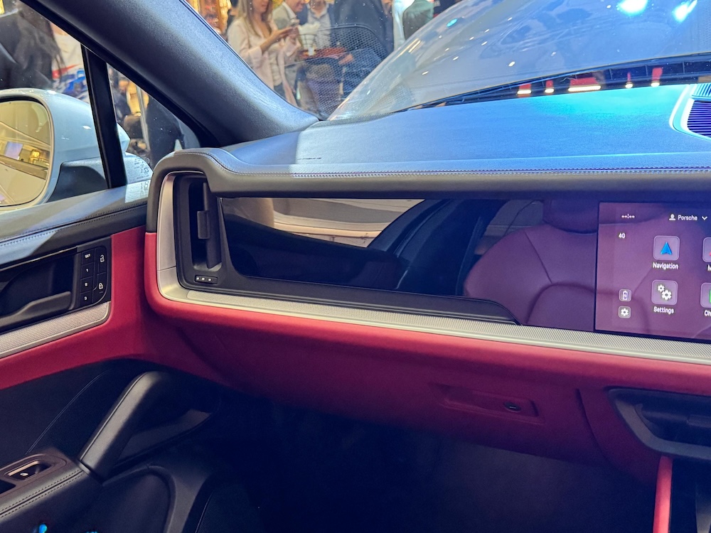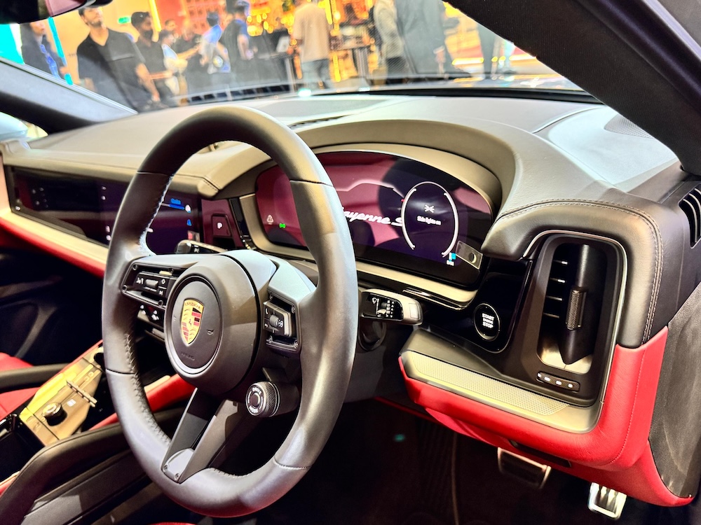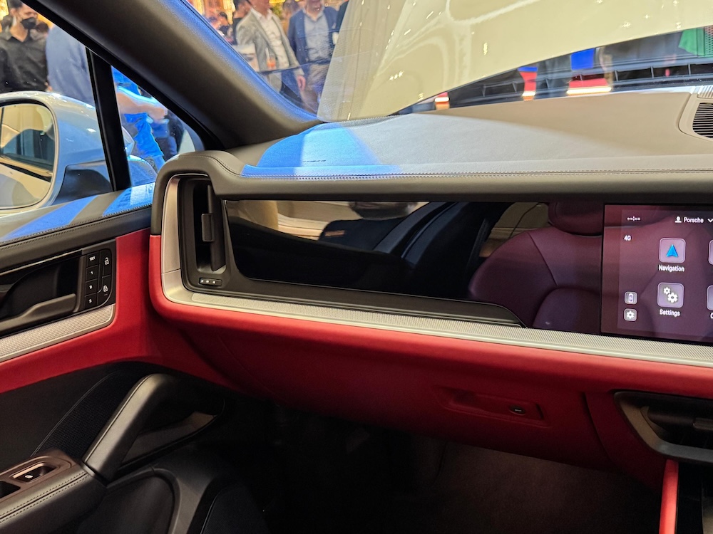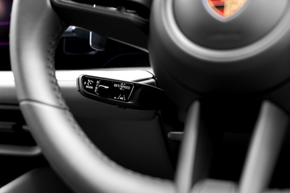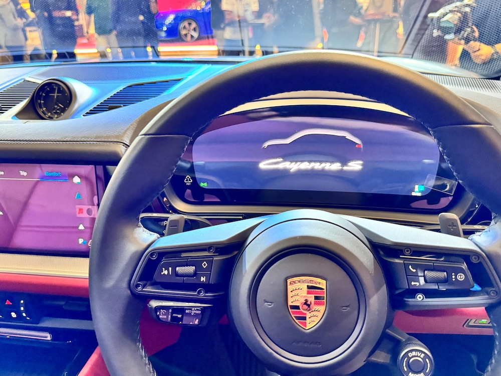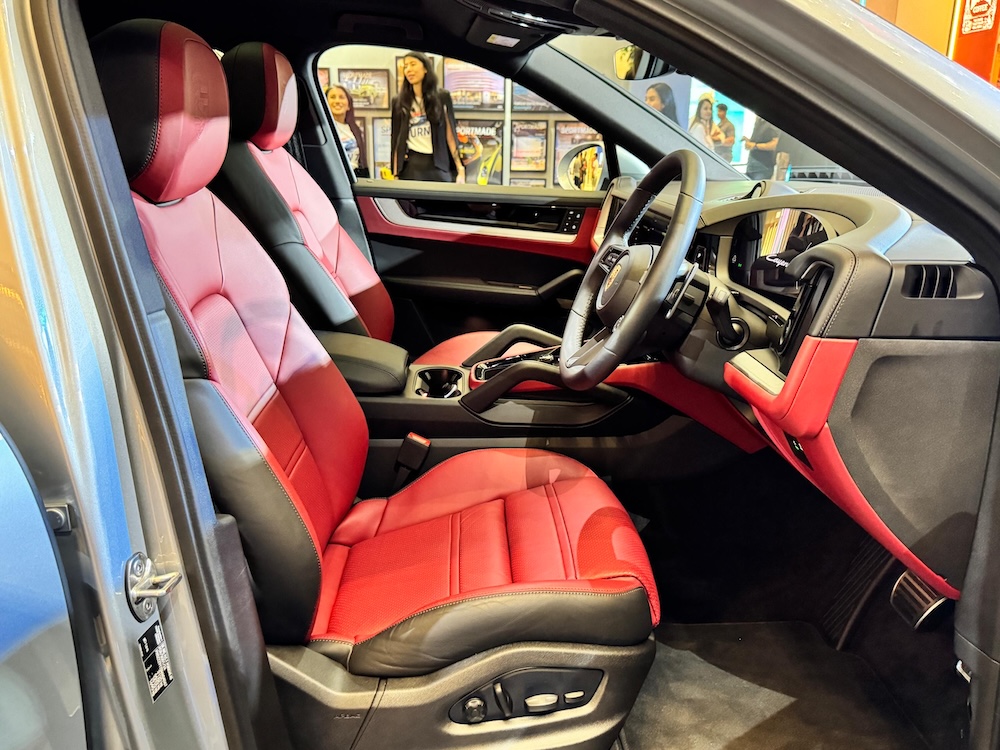 - Bahagian kabin dilengkapi stereng GT sport, sistem audio bunyi keliling BOSE, kerusi kulit dengan logo Porsche, dan kawalan penyaman udara empat zon.