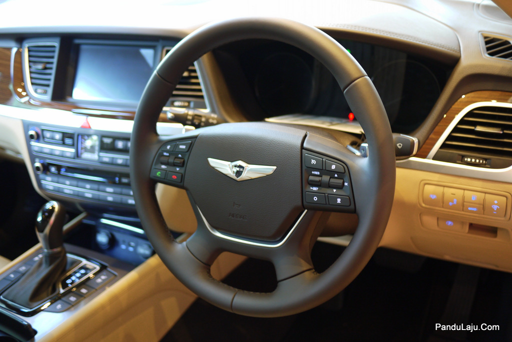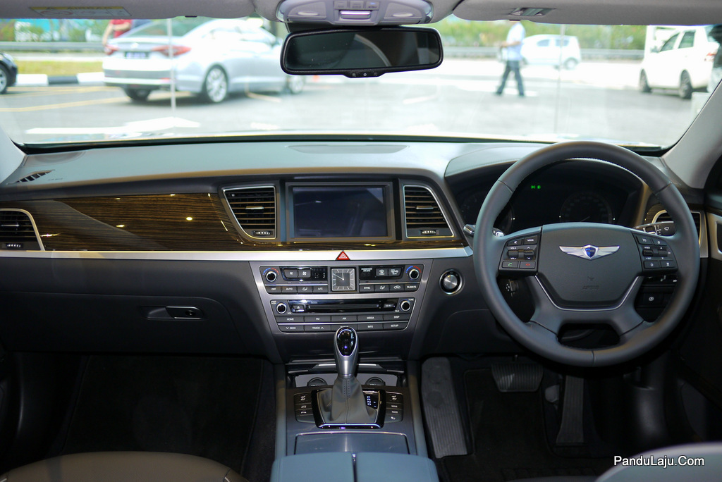 Memasuki ‘perut’ Genesis, anda akan ‘dihidangkan’ dengan kekemasan dan kemewahan. Ruang kokpit dibina berdasarkan Human Machine Interface (HMI), susunan butang-butang kawalan di ruangan papan pemuka dan konsol tengah membuatkan ia mudah dikendali.