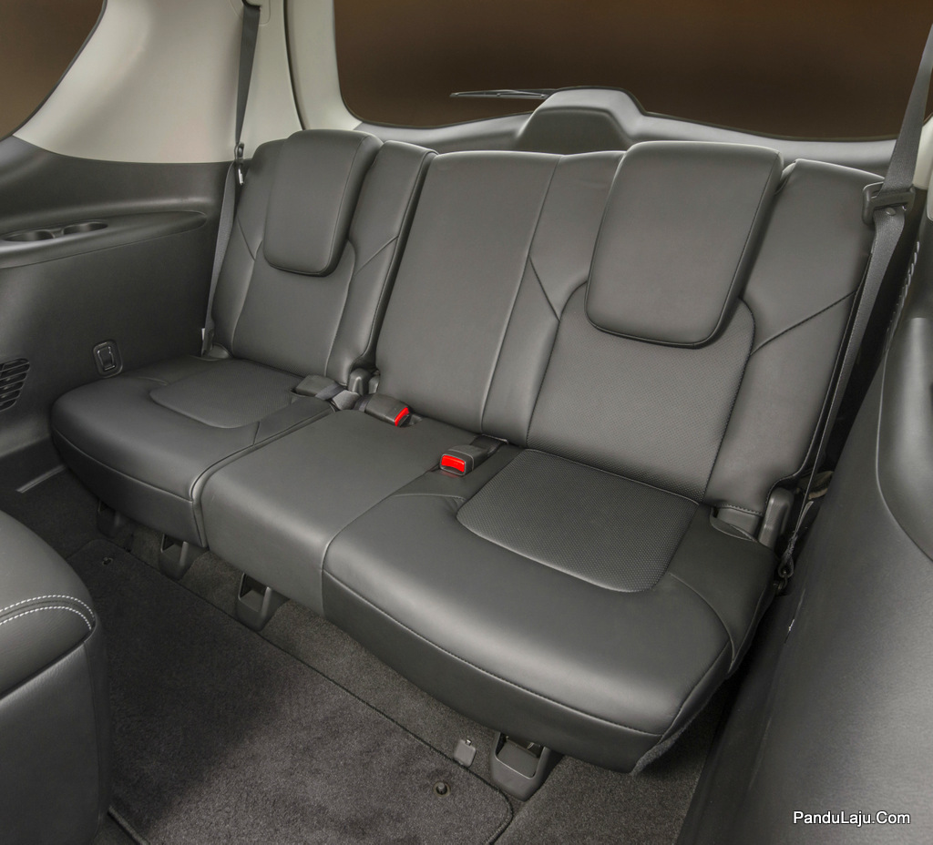 Jika mahukan ruangan lebih luas, tempat duduk baris kedua boleh dilipat dengan konfigurasi 60/40 melalui suis dan juga memudahkan urusan keluar masuk penumpang di tempat duduk baris ketiga.