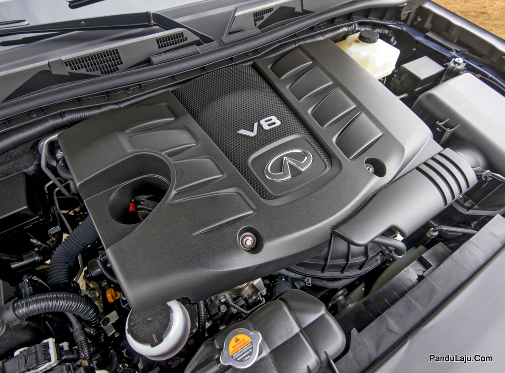 Aspek mekanikal, QX80 dijana unit enjin bersesaran 5.6L V8 bersama teknologi VVEL (Variable Valve Event & Lift) Infiniti. Hasil bantuan sistem Direct Injection Gasoline (DIG) bersama kotak gear automatik 7-kelajuan, ia mampu menghasilkan kuasa sehingga 405hp dan tork puncak 560Nm.