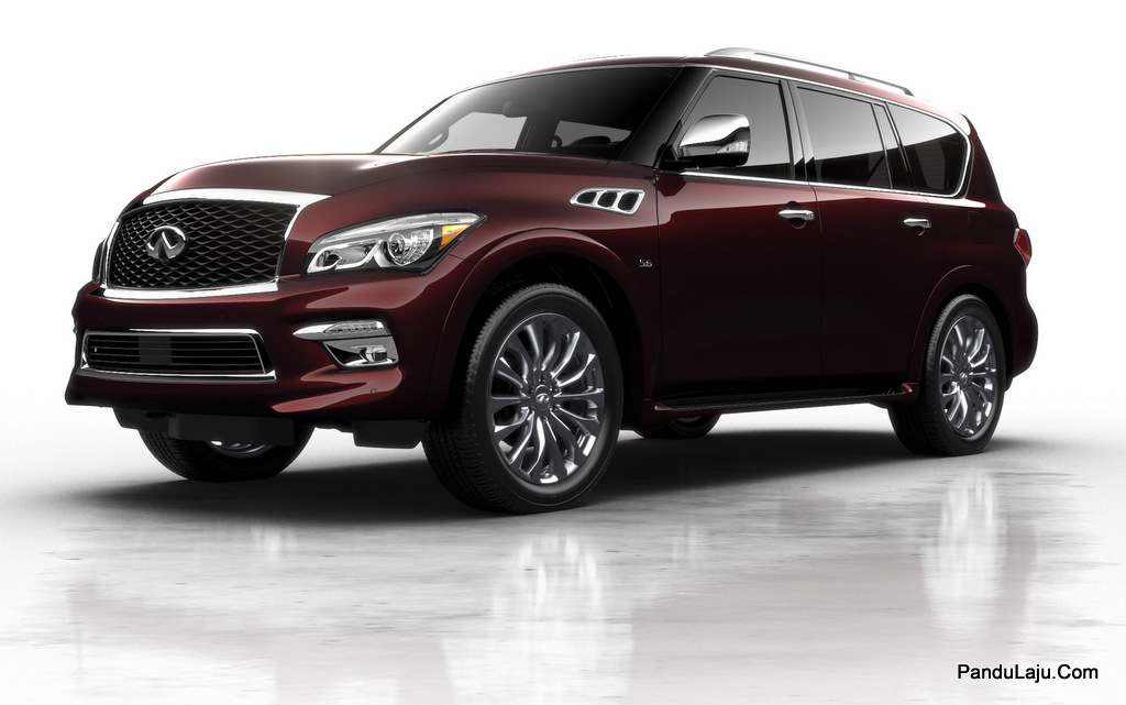 Infiniti QX80 menawarkan empat pilihan warna menarik seperti Majestic White, Graphite Shadow, Dark Currant dan Black Obsidian.