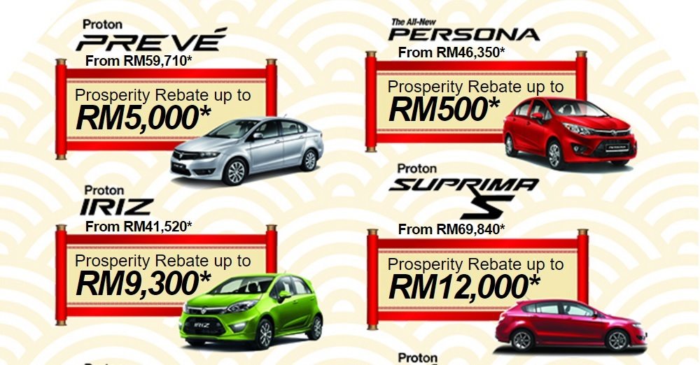 Bermula sekarang hingga 31 Januari 2017, pembeli Proton Suprima S bakal menikmati rebat tunai sebanyak RM12,000. Manakala pembelian Iriz pula menerima diskaun sebanyak RM9,300.