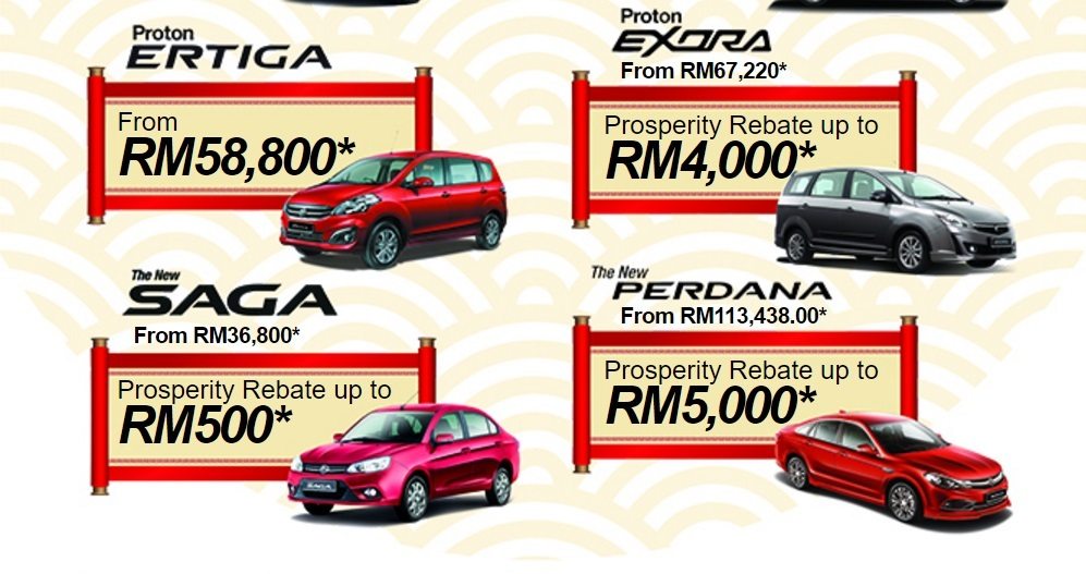 Berikut adalah senarai penuh model-model yang menawarkan rebat tunai sempana sambutan Tahun Baru Cina.