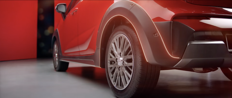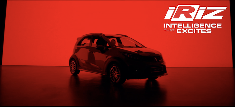 Aksi kereta berhenti pada laluan curam mendaki bukit memberi intepretasi bahawa Iriz akan hadir dengan ciri Bantuan Mula Bukit. Selain itu ada spoiler dan rel bumbung warna kontras dengan badan Iriz.
