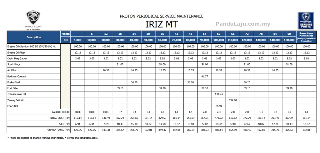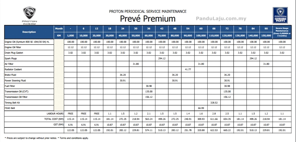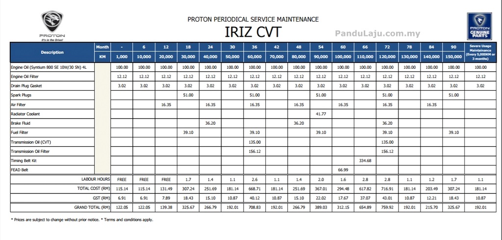 Malah, Proton turut menawarkan promosi penapis (oil filter) percuma bagi setiap penukaran minyak pelincir Petronas Syntium SE di pusat servis. Promosi sah sehingga 30 Jun ini. Bagaimanapun, penyelarasan harga alat ganti adalah sah sehingga bila-bila.