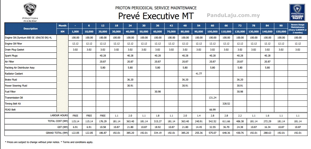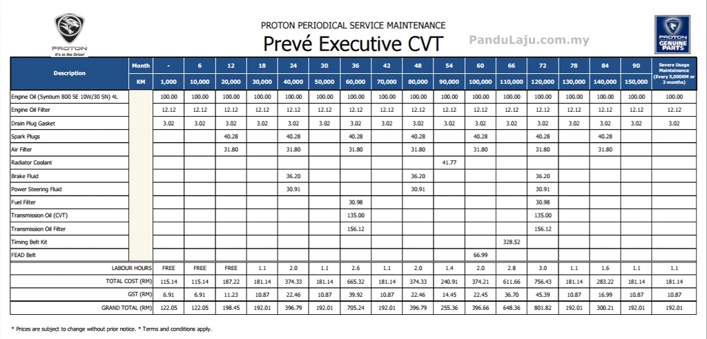 Proton Exora CFE misalnya. Harga servis major bagi 60,000km sebelum ini ialah RM1,137.22. Selepas penyelarasan, harga penyenggaraan bagi tempoh 60,000km hanya RM574.11. Anda boleh lihat perbezaan harga sebelum dan selepas penyelarasan di bawah: