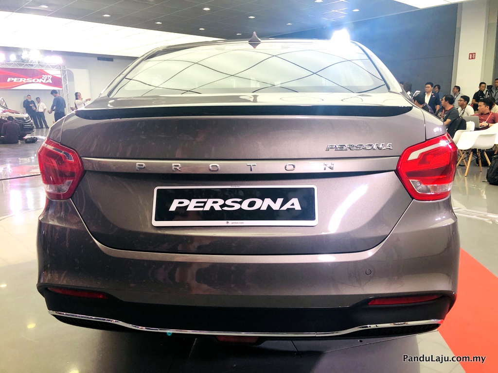 Sekali imbas, tampak rekaan belakang Proton Persona (2019) facelift lebih lebar dan besar. Rekabentuk lampu dan lampu kabus belakang masih sama, cuma tiada perkataan VVT selain spoiler lebih kecil.