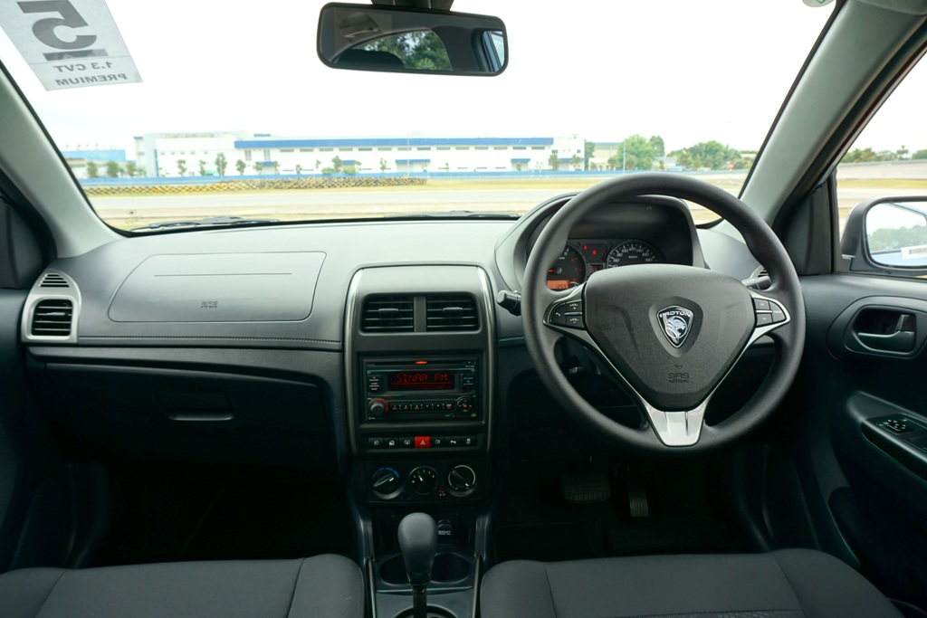 Jika stereng Saga FLX nampak agak murahan, stereng Saga (2016) pula lebih elegan. Terima kasih kepada lambang Proton yang bukan saja khas buat varian Premium saja, tetapi juga semua varian. Walaupun diambil daripada model Preve, penampilan stereng Saga (2016) nampak kena dengan rekabentuk baharu papan pemuka. Lekukan roda stereng berserta tengah stereng yang bersegi dan digemukkan berjaya menghilangkan visual bulat dan flat seperti dilihat pada Saga FLX.