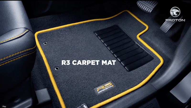 - Ada kit badan R3 seperti lip bampar depan dan skirt sisi kuning. Selain itu, aksen kuning turut dikenakan pada beberapa luaran kereta seperti perumah cermin sisi, panel gril depan dan bawah bampar belakang.