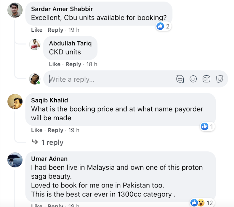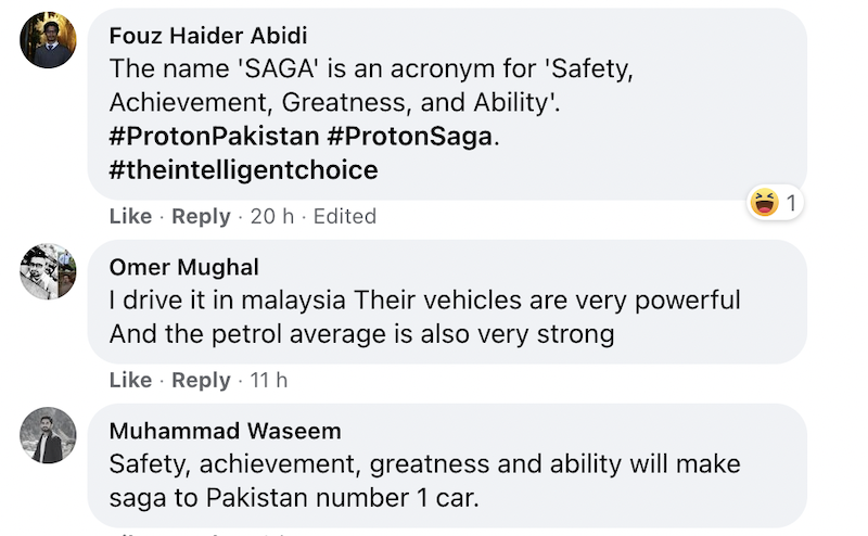 RAKYAT Pakistan membanjiri laman Facebook Proton Pakistan dengan memberikan banyak komen positif susulan pengenalan lima varian Saga yang dilancarkan secara digital pada 4 April (semalam) lalu.
