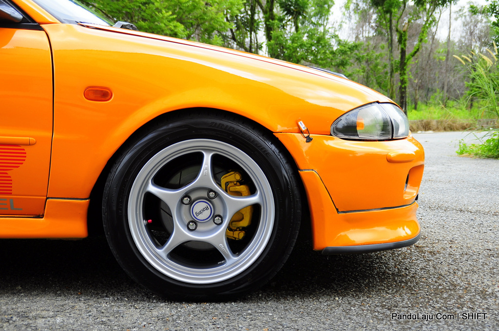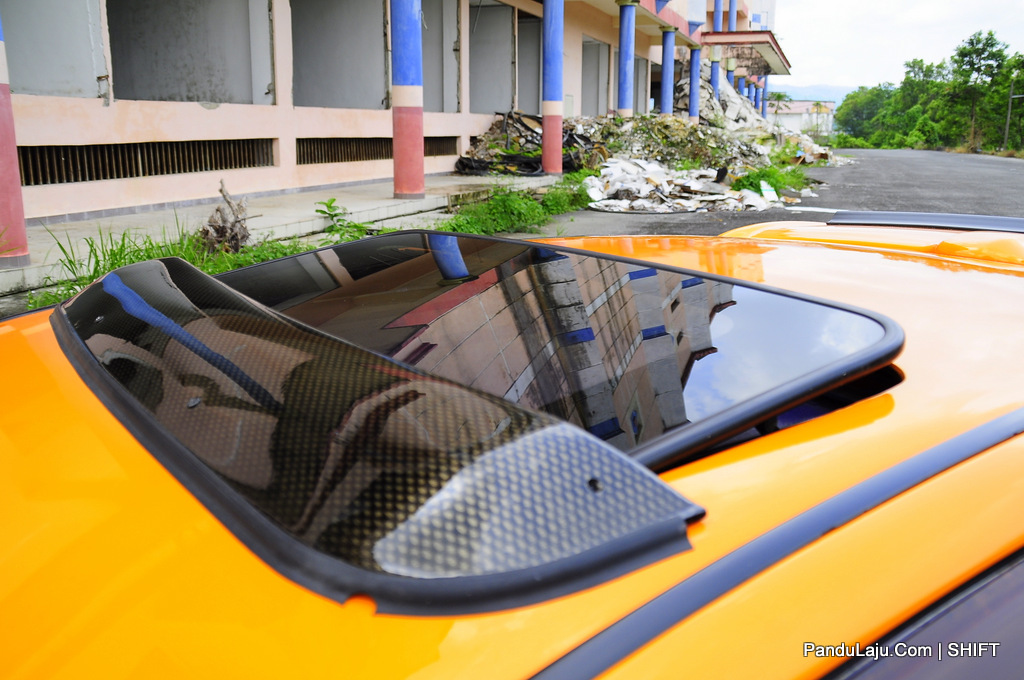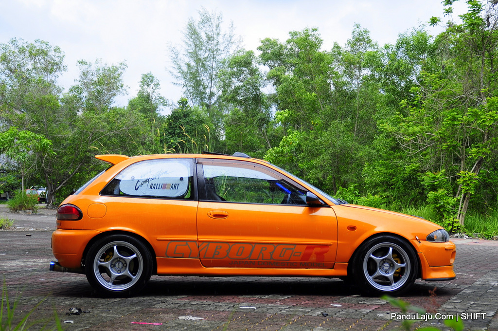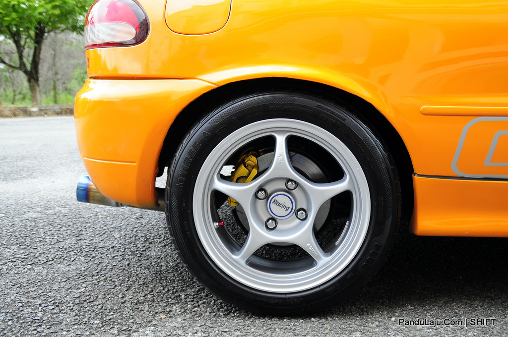 Turut tidak ketinggalan Sunroof dari model Evo III dipasangkan pada bahagian bumbung selain dipadankan dengan kit badan lengkap Cyborg R. Untuk tampak garang, rim Enkei RP01 berukuran 16-inci dipasang bersama ‘pasangannya’, tayar Bridgestone MY02.