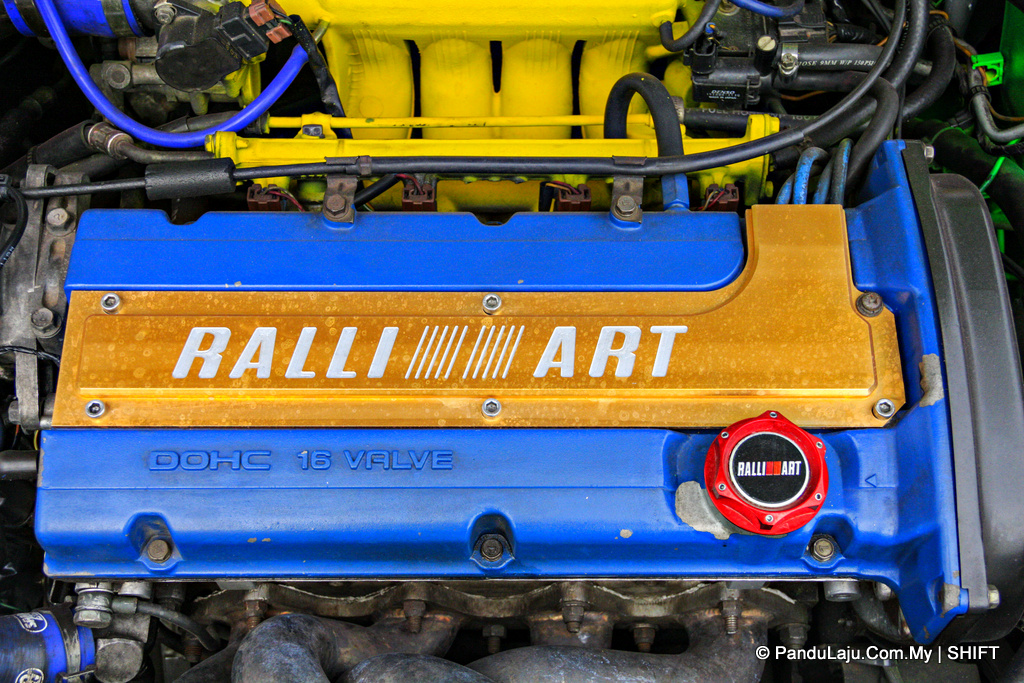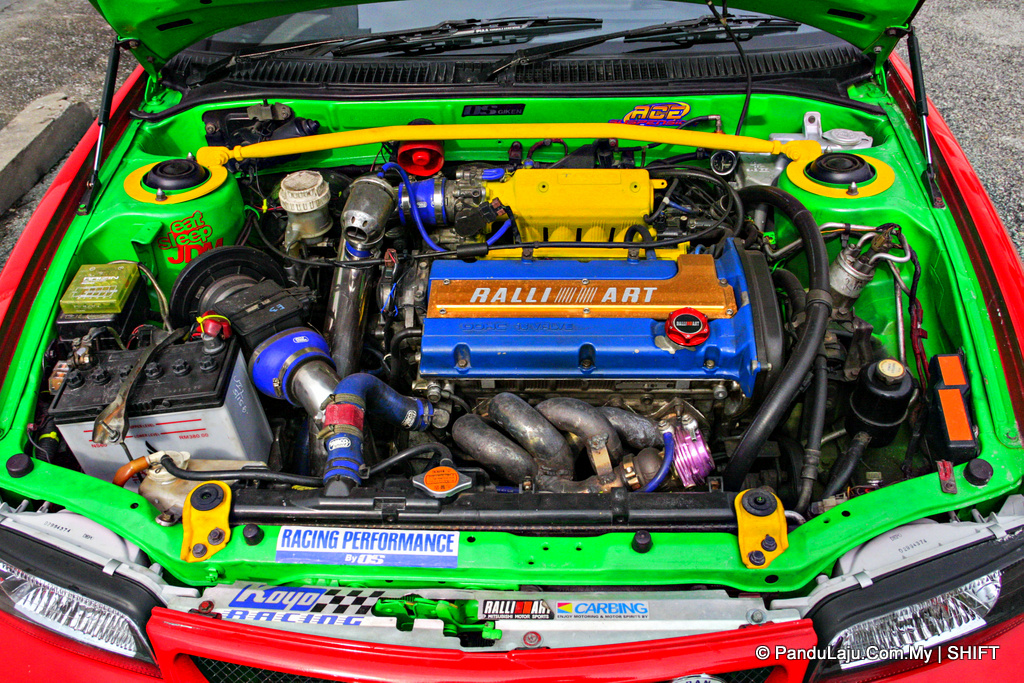 Bahagian paling utama yakni ruangan enjin ditukarkan kepada nadi 4G63T GSR RS bersesaran 1.8L. Kepala silinder asal enjin ini telah menerima proses ‘port & polish’ bagi mendapatkan lebih kelancaran prestasi.