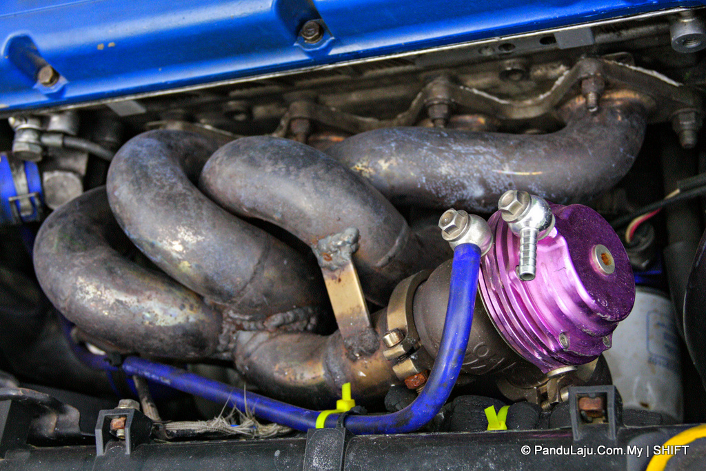MODIFIKASI ENJIN Port & polish kepala silinder, turbo TD05 22g, piston 82mm supercharger, conrod Eagle, banana ekstraktor, Tial wastegate, injector 510cc, airflow Evo III, Tomei fuel regulator, fuel pump Walbro