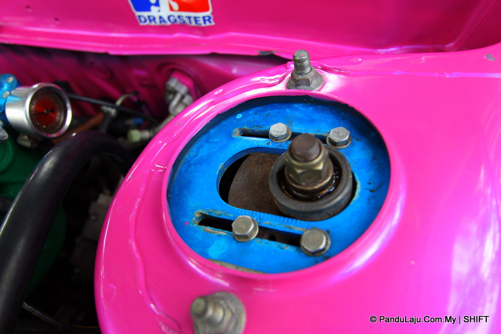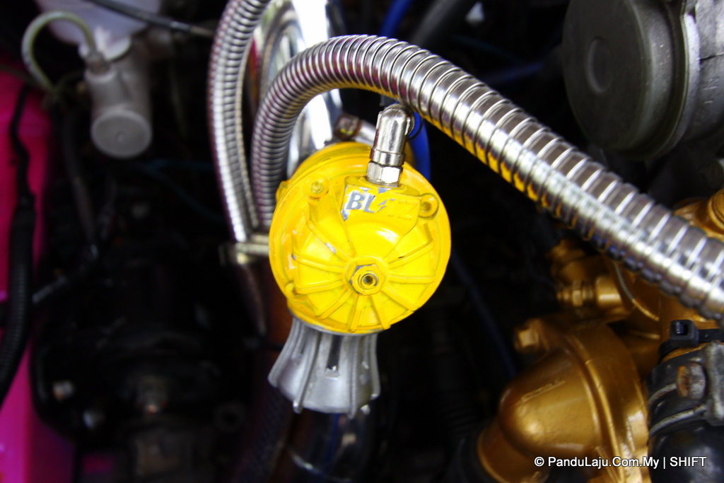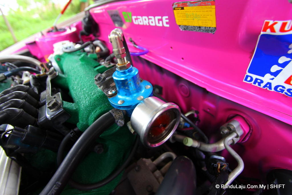Ruangan blok enjin pula dihuni oleh set piston milik Nissan Fairlady bagi menghasilkan tenaga lebih berkuasa. Beberapa peralatan enjin lain turut ditukarkan kepada berprestasi tinggi. Antaranya, unit pelaras bahan api dari Tomei, blow-off’ Blitz, wastegate Tial dan ekstraktor banana Jasma.