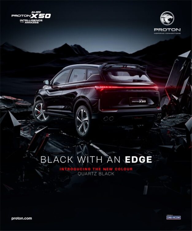 JENAMA kereta tempatan, PROTON kini menjadikan Quartz Black sebagai pilihan warna standard baharu untuk Proton X50 2026, susulan sambutan memberangsangkan terhadap X50 Black Edition yang diperkenalkan bulan lalu.