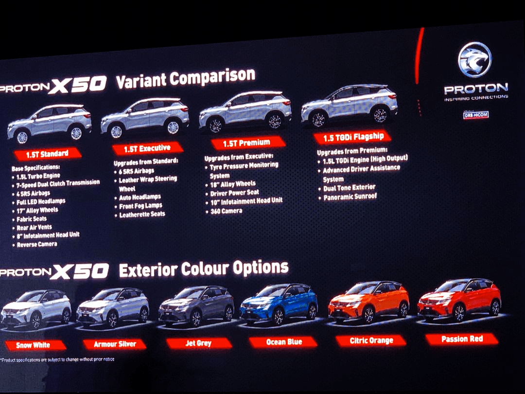- X50 didatangkan dalam empat pilihan varian: Standard, Executive, Premium dan Flagship.