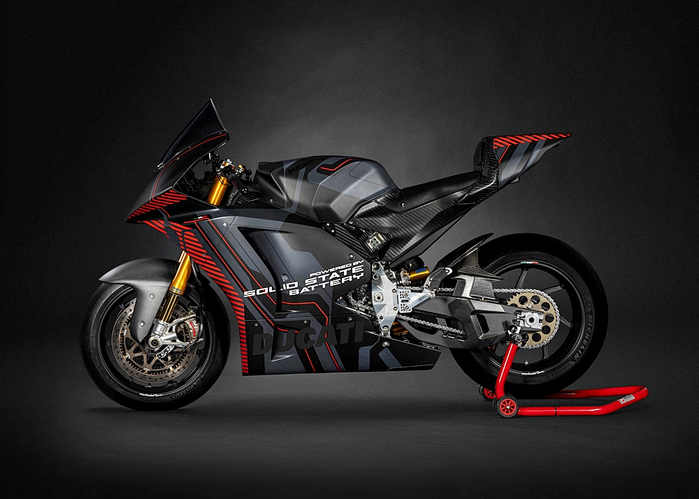 - Bateri Pepejal QuantumScape: Prototaip Ducati V21L dilengkapi bateri pepejal QuantumScape, hasil kerjasama langsung antara PowerCo dan QuantumScape. Teknologi tersebut bukan evolusi daripada bateri litium-besi biasa, tetapi teknologi sel baharu sepenuhnya.