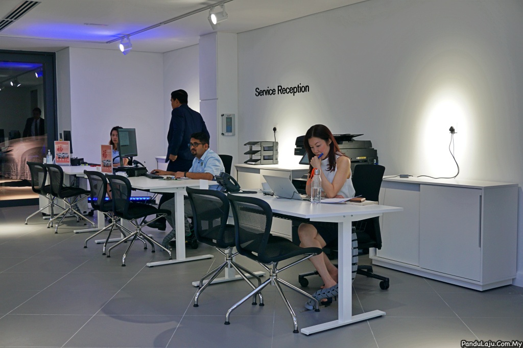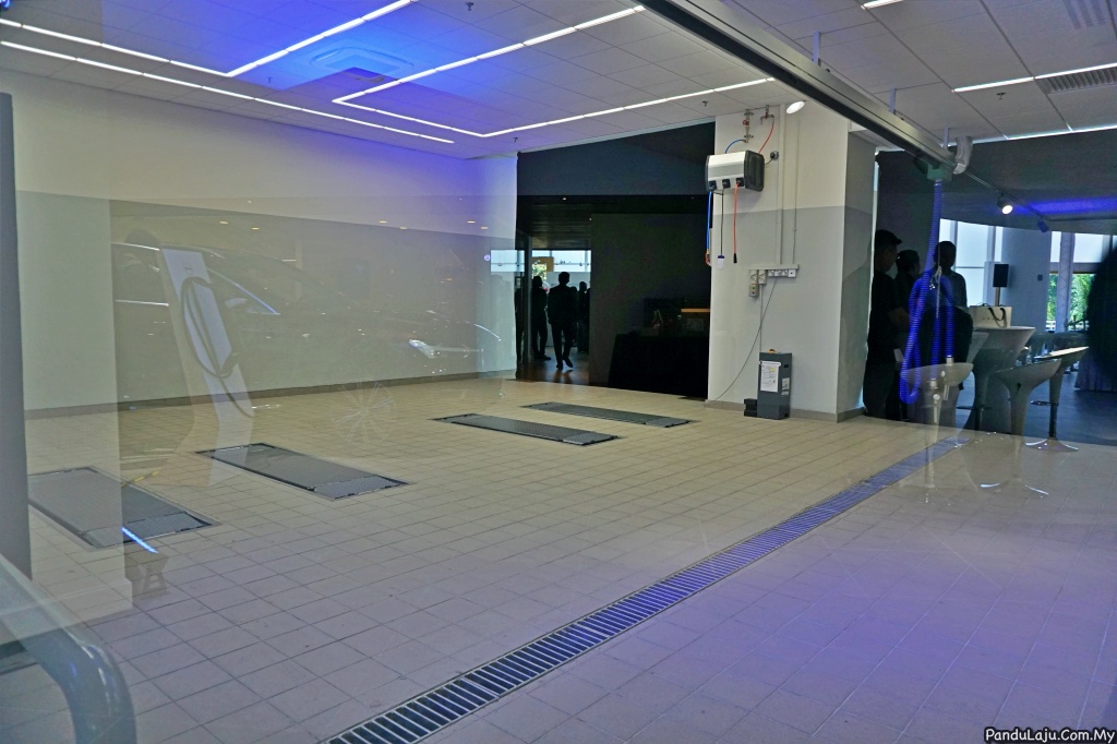 Bangunan pusat servis ini terdiri daripada bilik pameran di bahagian bawah yang menempatkan enam kenderaan pada satu-satu masa, manakala tingkat dua dan tiga terdapat lapan ruang servis, lengkap dengan sudut perapian (detailing). Di tingkat empat pula ialah ruang servis penjajaran dan imbangan.