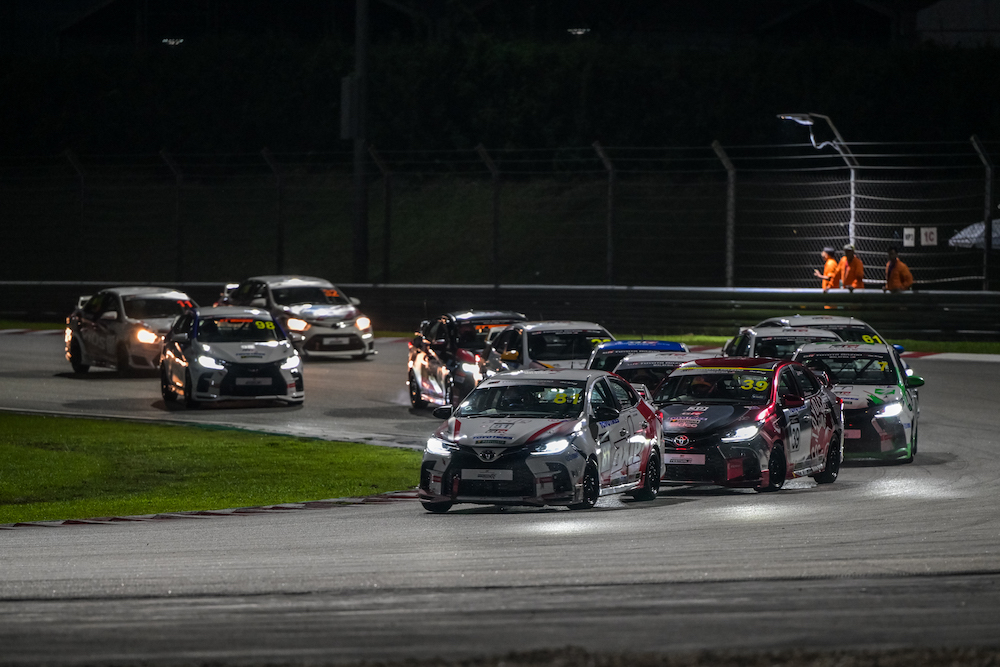 - Dalam format grid terbalik, Naquib Azlan (Axle Sports) mendahului perlumbaan dari petak utama diikuti duo pelumba Telagamas Toyota, Freddie Ang dan Hayden Haikal.