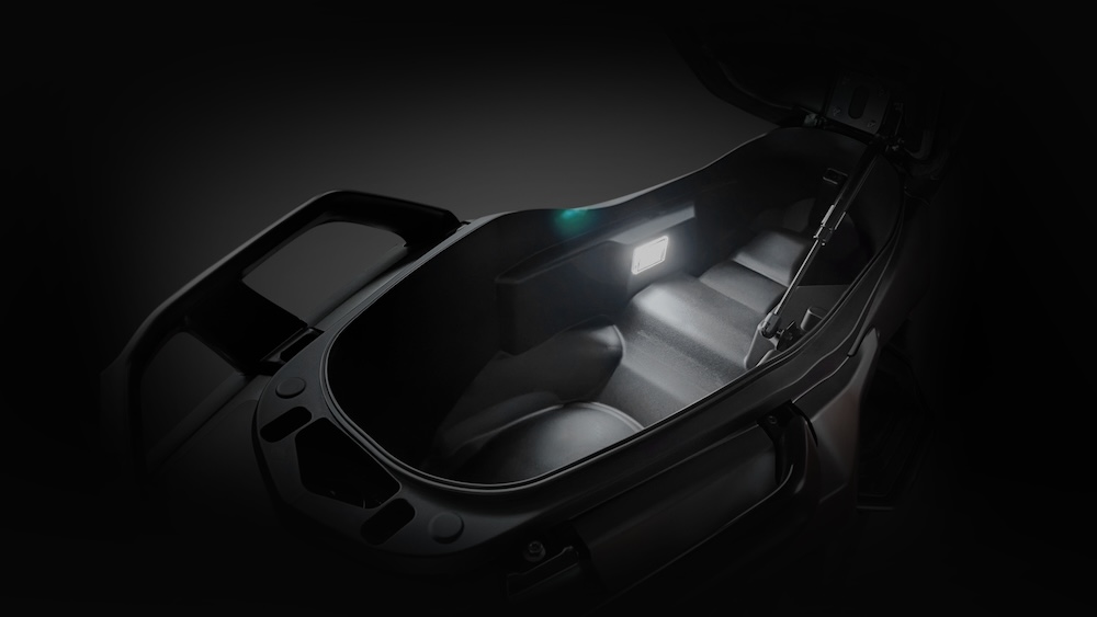 - Ada dua kotak simpanan kecil bawah bar hendal, dan visor angin kawalan elektrik.