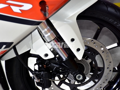 - Sistem suspensi menggunakan fork terbalik (USD) di depan dan monoshock boleh laras di belakang. Sistem ekzos diposisikan bawah motosikal.